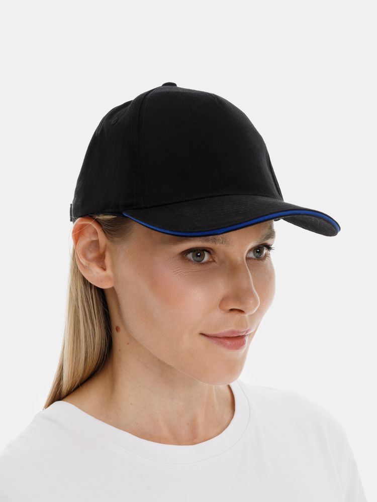 Бейсболка Long Beach, черная с ярко-синим