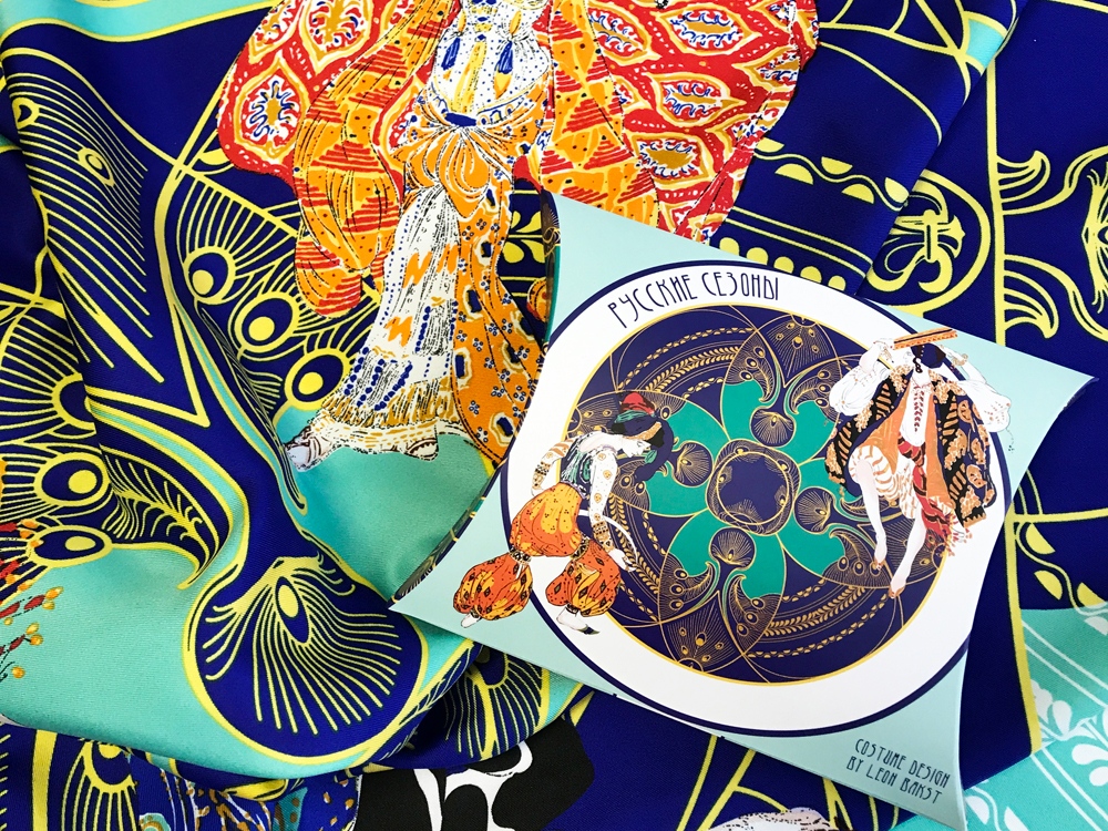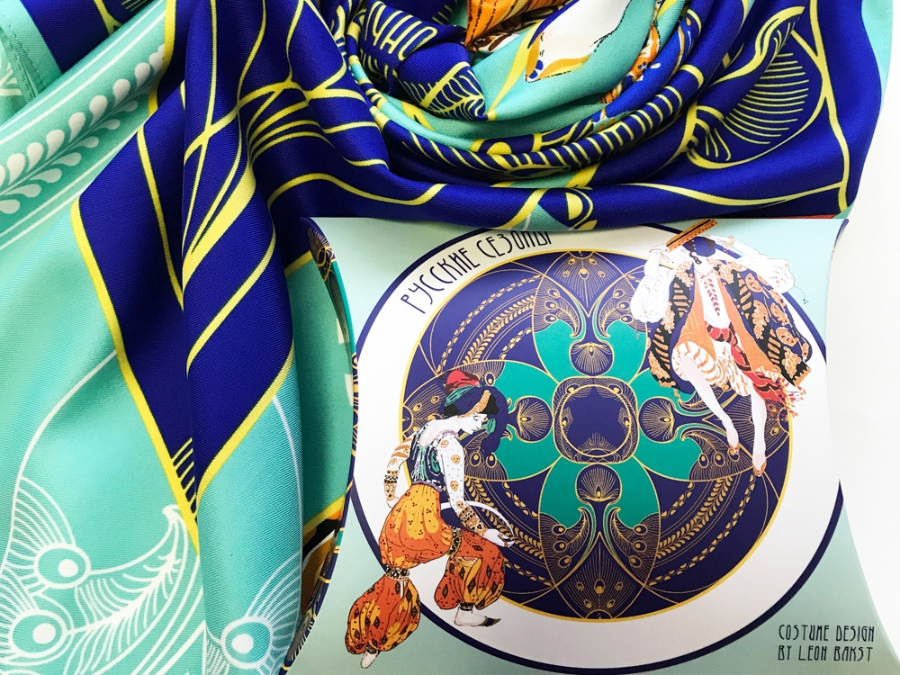 Русские сезоны Сергея Дягилева оказали колоссальное влияние на западное искусство и предопределили развитие мирового балета на несколько десятилетий вперед. Уникальный синтез хореографии, музыки, сценографии и костюмов произвел настоящую революцию в искусстве. Ведущий живописец Русских сезонов Лев Бакст и его костюмы открыли новую эпоху развития мировой моды. Критик А. Левинсон оценил ситуацию так: Париж был подлинно пьян Бакстом. В дизайне платка Русские сезоны. Лев Бакст мы воспроизвели эскизы костюмов к таким балетным спектаклям как Клеопатра, Шехерезада и Послеполуденный сон Фавна, поражающие зрителей своей фантазией, сказочной роскошью, утонченной изысканностью линий, новыми и смелыми сочетаниями красок. Мы надеемся платок Русские сезоны. Лев Бакст привнесёт в Вашу жизнь ещё больше творческого вдохновения и ярких, незабываемых эмоций. Советы по уходу: -Наши платки сделаны с душой и нуждаются в ответной душевной заботе и внимании. -Они практически не мнутся, очень приятные на ощупь, нежные и мягкие. Любят бывать на людях, посещать светские мероприятия, не выносят одиночества. -Всегда готовы к экспериментам и смелым сочетаниям. Прослужат верой и правдой долгие годы, никогда не выйдут из моды и всегда будут уместны и кстати. -Ручная стирка 40 градусов.