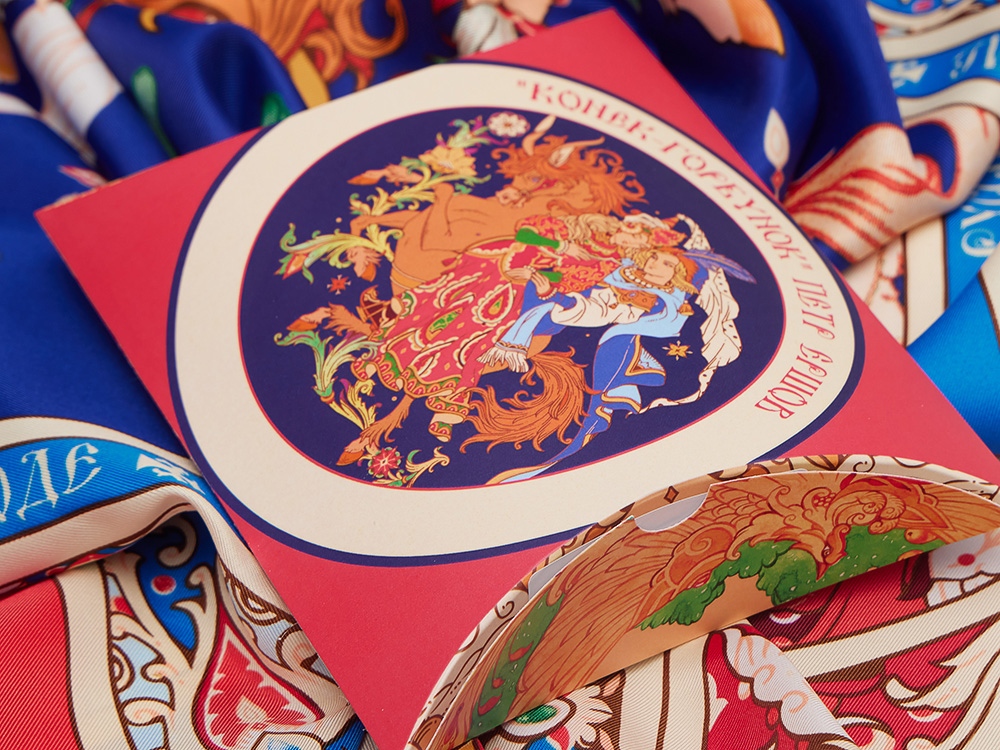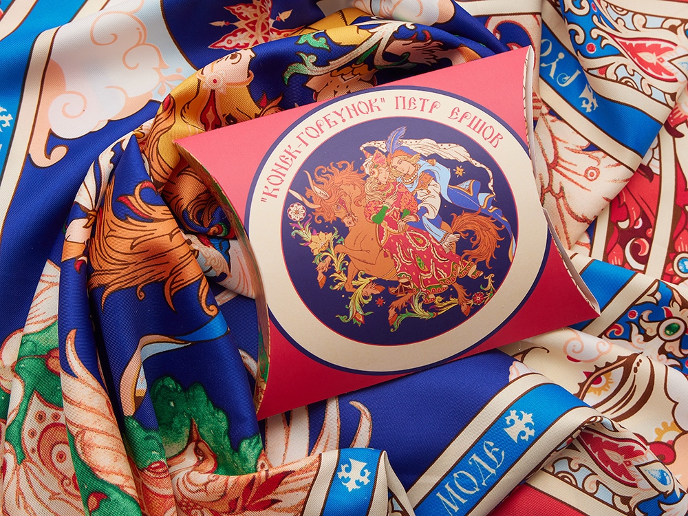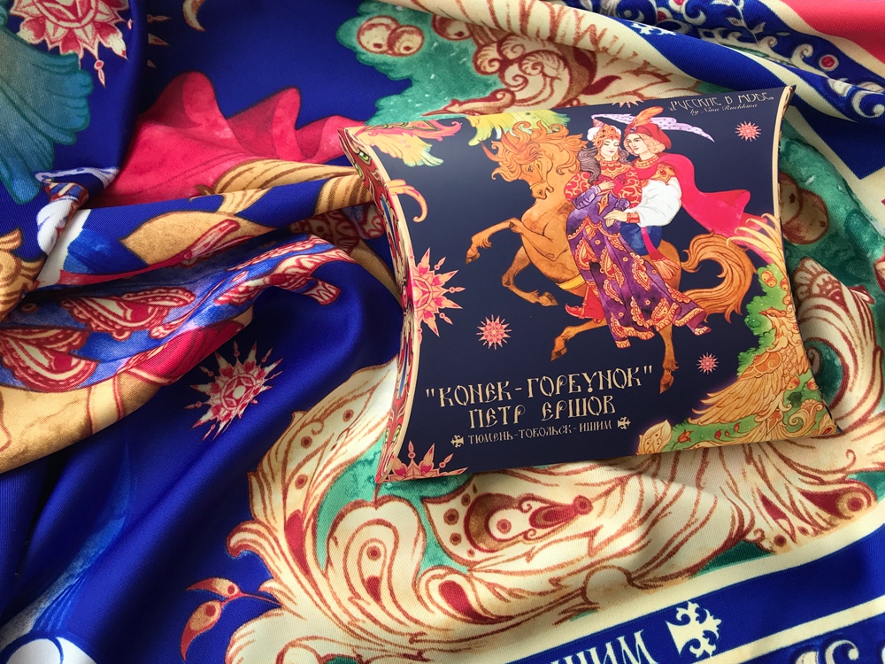 За горами, за лесами, За широкими морями, Не на небе - на земле Жил старик в одном селе… Известные каждому напевные строки сказки Конек-Горбунок неизменно возвращают нас в волшебный мир детства. Их автор – Петр Ершов – родился в 1815 году в маленьком селе Безруково Ишимского уезда Тобольской губернии, и, будучи еще совсем молодым, яркой звездой взошел на литературном небосклоне России. Прочитав сказку юного дарования, сам великий Александр Сергеевич Пушкин сказал: Этот род сочинений я могу теперь оставить - и Петр Ершов был принят в круг петербургских писателей.В этом году сказке из золотого фонда русской литературы, переведенной на все языки мира, исполняется 185 лет. Ее яркие краски мы перенесли на шелк и создали платок Конек-Горбунок. Благодаря тонкой работе дизайнера, со страниц книги, как живые, сошли герои любимой с детства истории: Иван, прекрасная Царь-девица и волшебный Конек-Горбунок. А в роскошных орнаментах сплелись легендарное перо Жар-птицы, Красное Солнышко и Месяц… Пусть этот платок принесет в Вашу жизнь немного чуда и наполнит ее вдохновением! Над дизайном работали: Мила Лосенко, Нина Ручкина. Советы по уходу: -Наши платки сделаны с душой и нуждаются в ответной душевной заботе и внимании. -Они практически не мнутся, очень приятные на ощупь, нежные и мягкие. Любят бывать на людях, посещать светские мероприятия, не выносят одиночества. -Всегда готовы к экспериментам и смелым сочетаниям. Прослужат верой и правдой долгие годы, никогда не выйдут из моды и всегда будут уместны и кстати. -Ручная стирка 40 градусов.