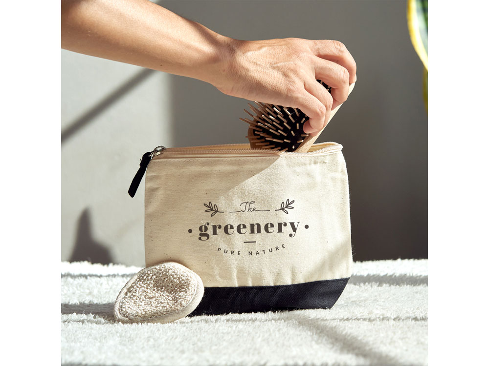 Чемоданы, сумки и прочие аксессуарыПрочие сумки, несессеры и косметички → Косметичка DOEL из хлопка плотностью 280 г/м2, бежевый/черный