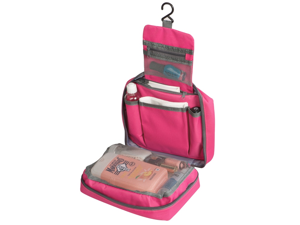 Несессер для путешествий – неотъемлемый атрибут комфортных поездок, служащий для компактного хранения различных мелочей. Аксессуар также пригодится для походов в спортзал и просто поддержания порядка дома. Это превосходный подарок любителю путешествий, а также отличный вариант промо-презента для рекламных кампаний. Большая поверхность позволяет нанести логотип или слоган фирмы. • Вместительное пространство с двумя большими отделениями и несколькими карманами дает возможность эргономично распределить весь дорожный арсенал косметических и туалетных принадлежностей. • Крючок позволяет подвесить аксессуар, например, в уборной поезда или гостиничном номере, в случае отсутствия полки. • Оптимальные размеры, не превышающие формат А4, позволяют легко разместить несессер в любом чемодане или дорожной сумке.
