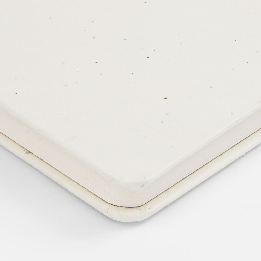 Бумага и обложка произведены из переработанных пакетов из-под молока. Обложка из картона плотностью 140 г/м² .