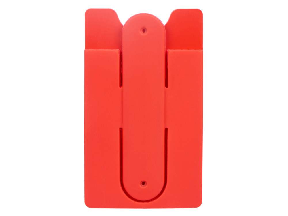 Чехол для визиток и кредитных карт с функцией подставки. За счет клейкой основы прикрепляется к обратной стороне телефона или любой другой плоской поверхности.
