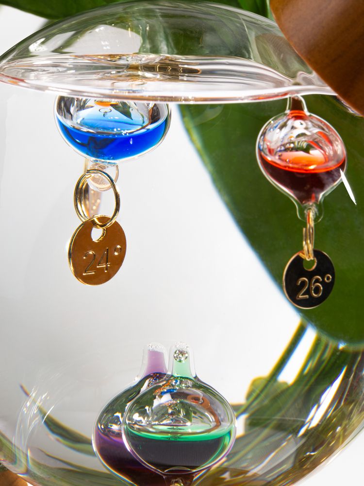 Температура определяется по значению на самом верхнем всплывшем шарике.