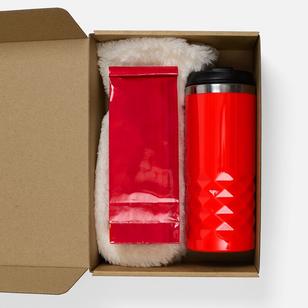 - Материал: термостакан, крышка - пластик; внутренняя стенка - нержавеющая сталь; варежки - полиэстер 100%, плотность 280 г/м², длинноворсовый флис; коробка - микрогофрокартон