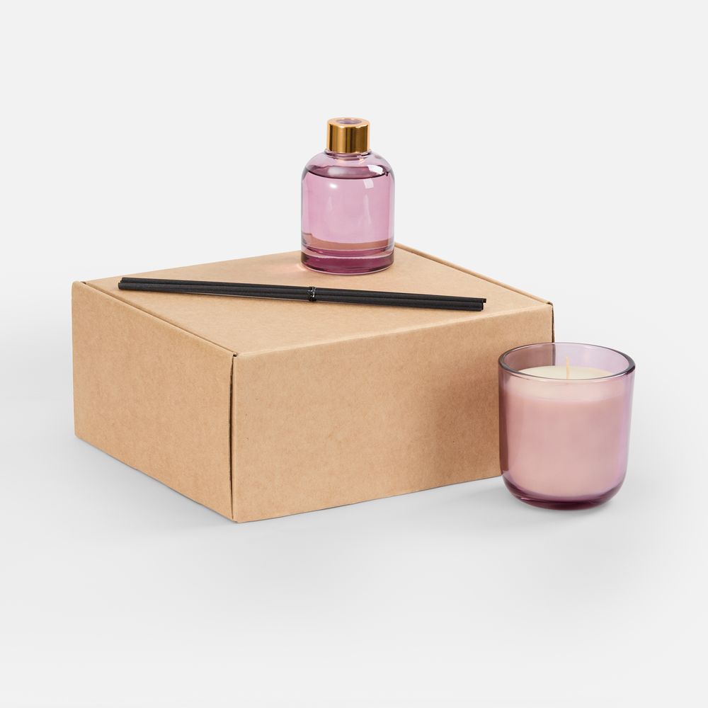- Материал: флакон, подсвечник - стекло, палочки из файбера; свеча - воск; коробка - микрогофрокартон, плотность 385 г/м²