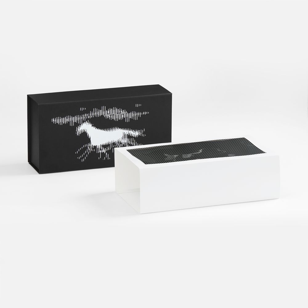 Интерактивный элемент усиливает эмоциональный отклик и впечатление от вручения подарка. Этот мощный и динамичный визуальный прием превращает обычную упаковку в выразительный образ — метафору развития, энергии и преодоления дистанции.