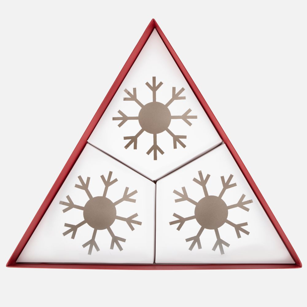 А еще Finery Trio — это маленькое произведение искусства, созданное с вниманием к деталям: шары диаметром 10 см бережно уложены в индивидуальные ложементы с изящным вырезом в форме снежинки, а стильная коробка придает подарку особую торжественность. Нестандартная треугольная форма упаковки подчеркивает оригинальность композиции и делает презент по‑настоящему запоминающимся.