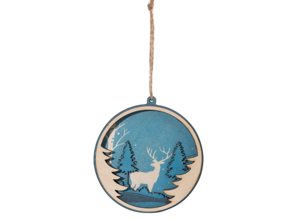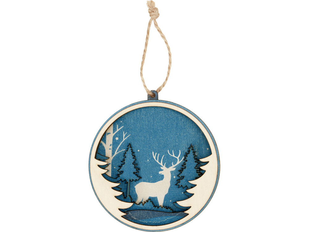 Игрушка выполнена из трех слоев фанеры и прекрасно подходит для того, чтобы украсить новогодний набор, подарок либо стать самостоятельным небольшим памятным презентом. Игрушка имеет свой рельеф: приглядитесь, и вы заметите, что фигуры пейзажа находятся на разных слоях фанеры, что придает изображению объемность.
