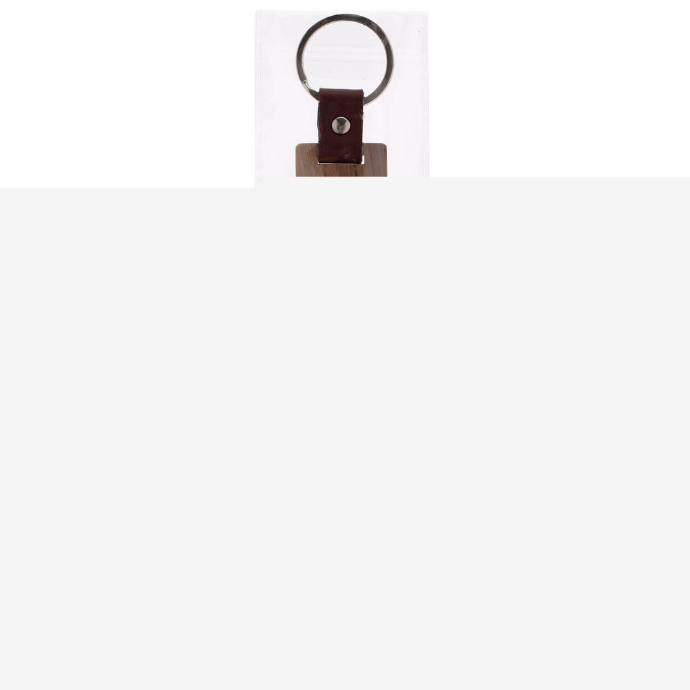 Прямоугольная пластина из ароматного красного дерева сапеле, которая крепится к кольцу хлястиком из искусственной кожи, — лаконичное и практичное решение в природном стиле.