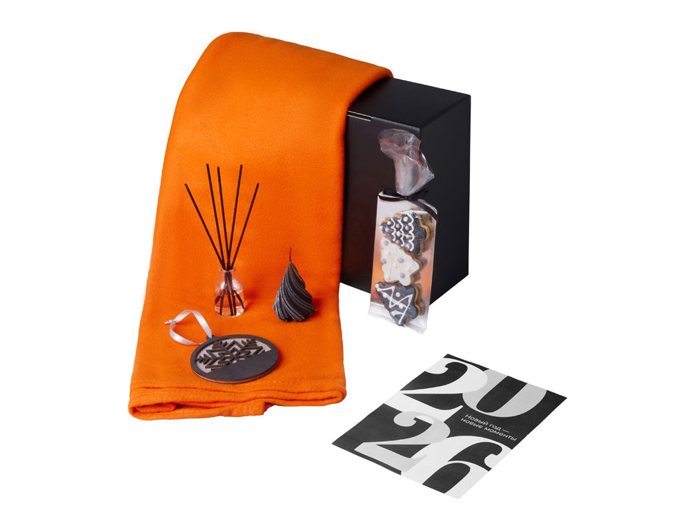Текстиль для домаПледы и подушки → Подарочный набор с пледом, свечой и диффузором, оранжевый