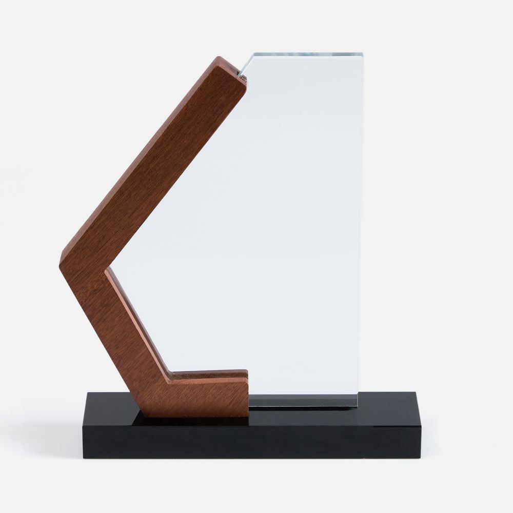 Стела изготовлена из стекла К9, в основе которого лежит оптическое боросиликатное стекло. Эту марку стекла отличает низкий процент посторонних включений, высокий показатель преломления и высокая прозрачность — идеальные качества для изготовления наград премиального уровня.