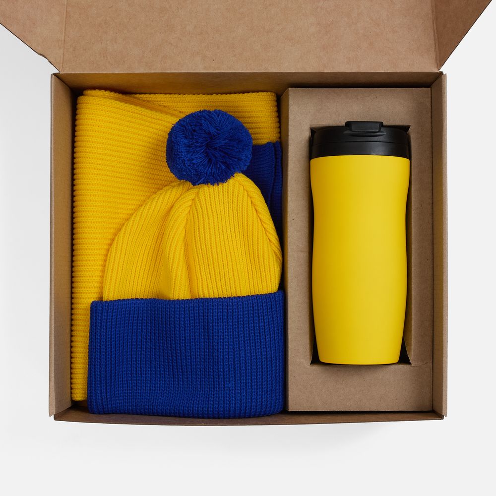 - Материал: шарф, шапка - акрил 100%; термостакан - нержавеющая сталь, покрытие софт-тач, крышка, внутренняя колба - пластик; покрытие софт-тач; крышка, внутренняя колба - пластик; коробка - микрогофрокартон, Т-23Е