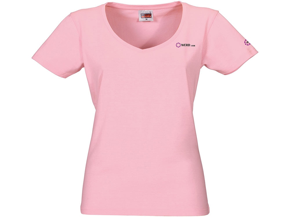 Женская футболка из натурального хлопка с элегантным V-образным вырезом. Материал отлично подходит для нанесения рекламной информации. Натуральная ткань не вызывает раздражения кожи.