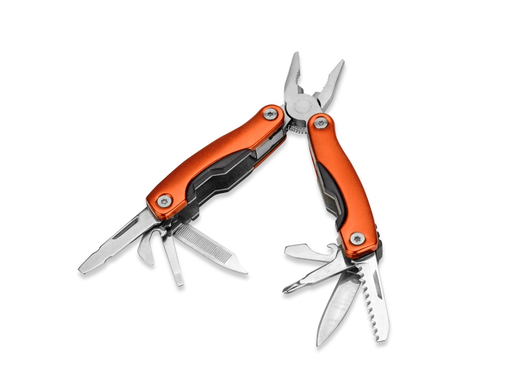 Cскладной нож-мультитул 11-в-1 Demi выполнен из нержавеющей стали. Поставляется в нейлоновом чехле. 1. Нож 2. Пила 3. Пила-серрейтор 4. Ножницы 5. Консервный нож 6. Плоская отвертка и открывалка для банок 7. Крестовая отвертка 8. Нож для писем 9. Пилка для ногтей 10. Шило 11. Штопор