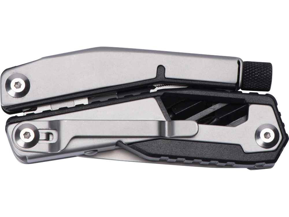 Складной нож Scopus от roq выполнен в ассиметричном необычном дизайне, в его составе — среднего размера нож, пассатижи, плоская и крестовая отвертки (биты), шестигранный ключ 5 мм. Брендированный чехол в комплекте. • легко открывается и закрывается • фиксатор на упоре • клипса для ношения на поясе • компактный • нержавеющая сталь 420 марки