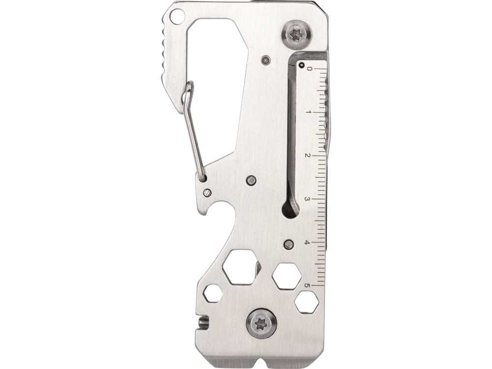 Многофункциональный инструмент с корпусом из прочной нержавеющей стали содержит 13 функций. Инструменты: • консервный нож • отвертка • линейка • открывалка для бутылок • гаечные ключей для гаек • пила • карабин - 13 функций - нержавеющая сталь