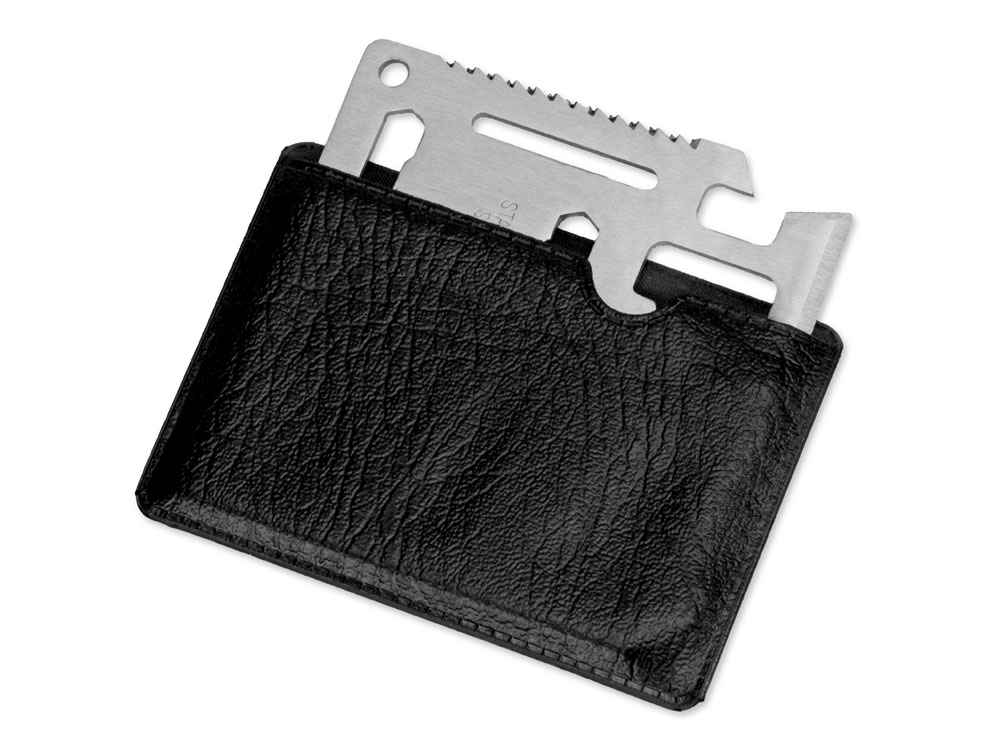 Карту можно подвесить на брелок или карабин (не идут в комплекте), продев их сквозь специальное отверстие. Для хранения прилагается специальный чехол из искусственной кожи (ПУ), который не даст острым краям мультиинструмента нанести ущерб вашей одежде или содержимому сумки, а также защитит Helper mini от загрязнений. Чехол плотно облегает мультиинструмент, имеет удобный крой и выемку для пальца, поэтому вытаскивать его удобно и легко.