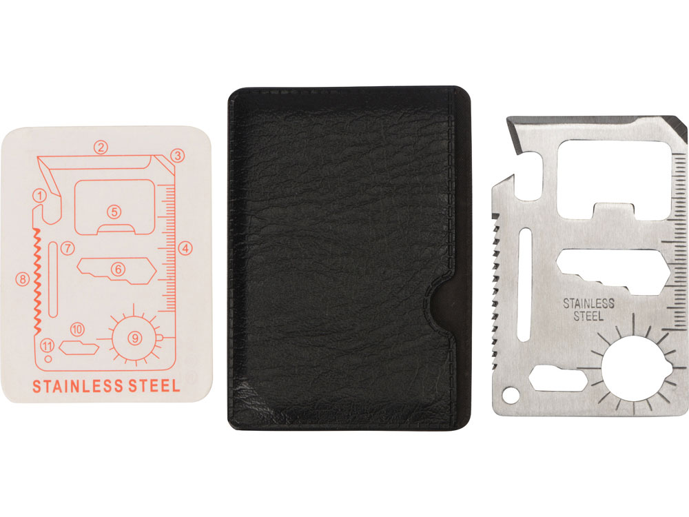 Мультиинструмент Helper mini в виде карты объединяет в себе 10 различных приспособлений: консервный нож, лезвие, плоскую отвертку, линейку, открывалку для бутылок, гаечный ключ на 4 различных размера головок болтов, ключ для барашковых гаек, пила, транспортир, гаечный ключ на 2 размера. Мультиинструмент выполнен из нержавеющей стали, что обеспечивает легкость, прочность и долгий срок эксплуатации Helper mini.