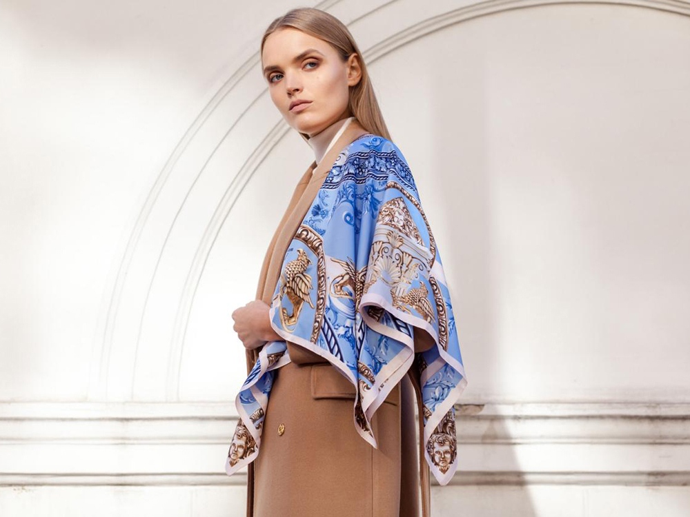 Общее решение платка соотносится с интерьерами церемониальных залов восхитительных крымских дворцов. Во все времена сильные мира сего возводили в Крыму выдающиеся произведения архитектурного мастерства. Колонны, барельефы и замысловатый декор многочисленных стилей и эпох - визитные карточки Крымского полуострова, они навсегда пленили моё сердце и душу. В центре композиции - драгоценная жемчужина - дар природы, символ уникальности Крыма, его неисчислимых богатств, красоты и щедрости. Дополнительно, именно жемчуг олицетворяет женское начало, совершенство и тайное знание, а также чистоту и возвышенность. Нежно-голубой фон цвета неба и воды обволакивает романтикой, морские канаты напомнят о могуществе Черноморского флота. Виноградные лозы, обрамляющие центральную композицию, расскажут об истории виноделия, которое зародилось в Крыму ещё в античные времена. Финальный штрих - царственные грифоны - символы могущества и власти, непоколебимо охраняющие великолепие райского уголка. Стражи сокровищ привносят законченность, утончённость и неподдельную роскошь в общую композицию и призваны охранять самую драгоценную жемчужину мира - прекрасную обладательницу платка. Советы по уходу: -Наши платки сделаны с душой и нуждаются в ответной душевной заботе и внимании. -Они практически не мнутся, очень приятные на ощупь, нежные и мягкие. Любят бывать на людях, посещать светские мероприятия, не выносят одиночества. -Всегда готовы к экспериментам и смелым сочетаниям. Прослужат верой и правдой долгие годы, никогда не выйдут из моды и всегда будут уместны и кстати. -Ручная стирка 40 градусов.