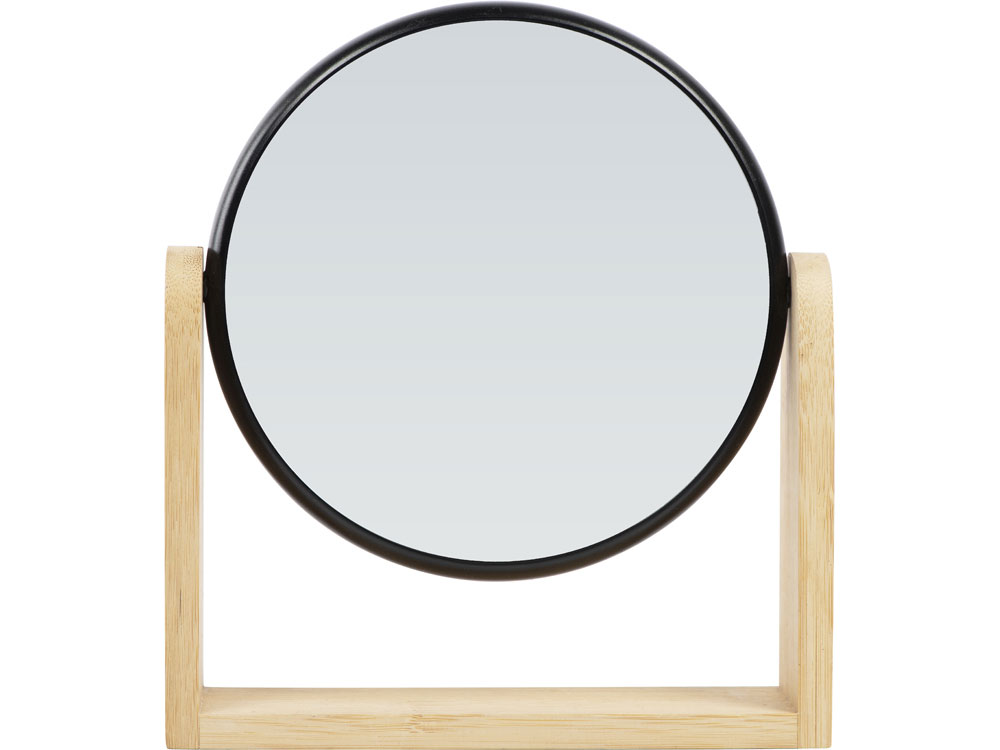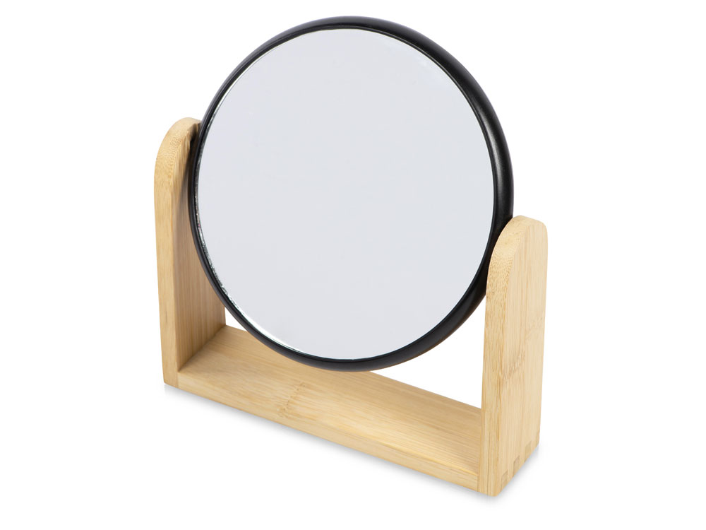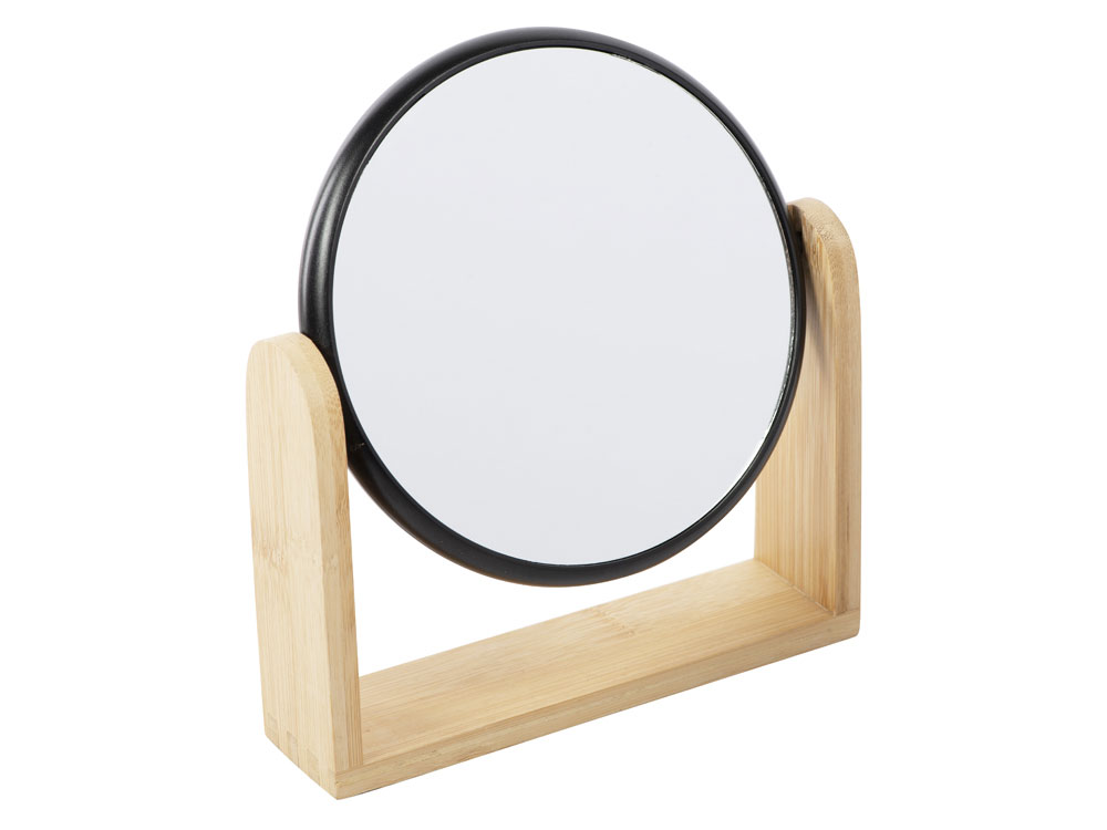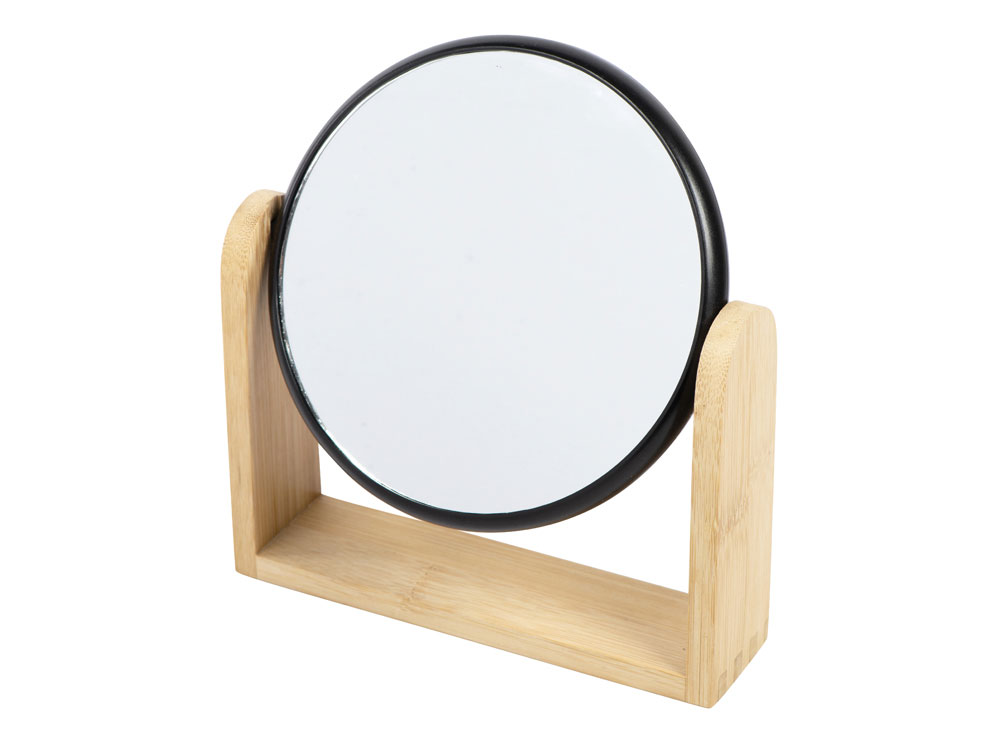 Стильное двустороннее зеркало с бамбуковой подставкой в черной рамке. Одна сторона показывает стандартное отражение, другая - с 2-хкратным увеличением.