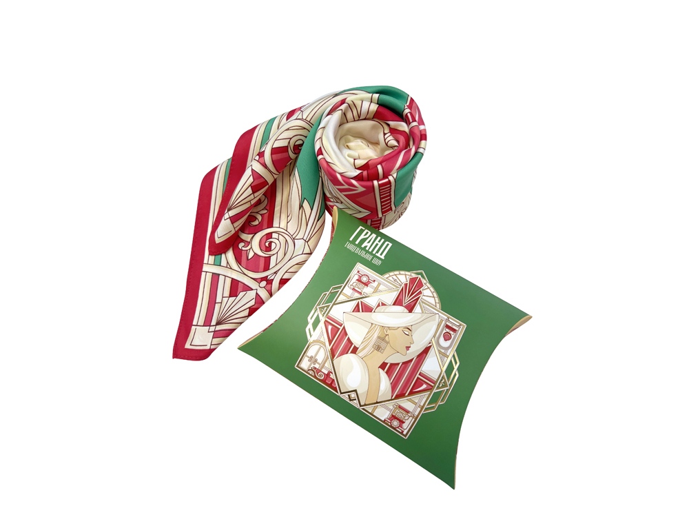 Коллекционный платок ГРАНД создан дизайнером Ниной Ручкиной специально ко дню премьеры грандиозного танцевального шоу История в отеле в лучших традициях бродвейских постановок, которое выходит впервые на российской сцене. Остроумное и зажигатлеьное шоу впервые соберет на одной сцене 26 чемпионов России по танцам-16 чемпионов мира, которые расскажут зрителю самые разные отельные истории: от девичника перед свадьбой в баре до романтического свидания на крыше отеля. Каждая комната таит в себе секреты, полные чувств, эмоций, драйва, музыки и, конечно же, танцев. Автор идеи и ген.продюсер Денис Тагинцев