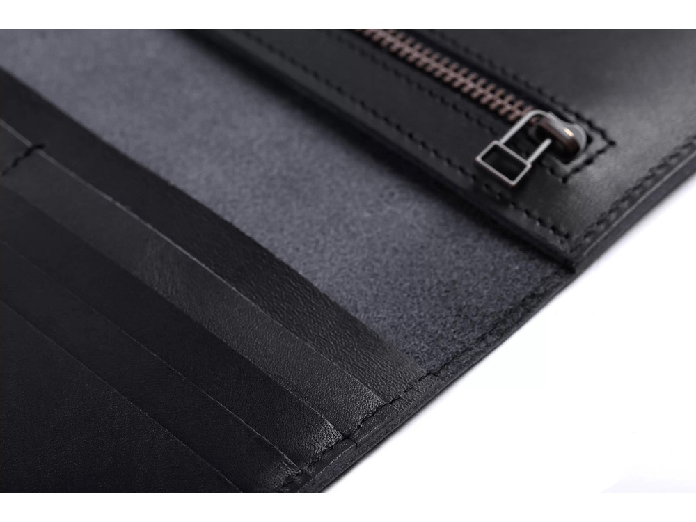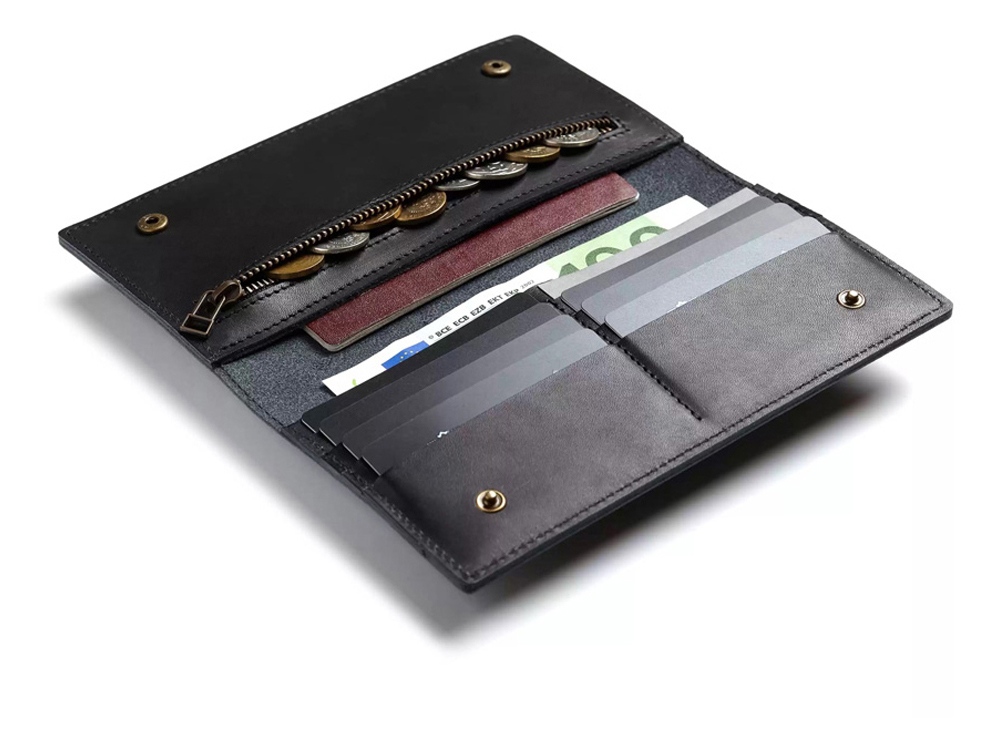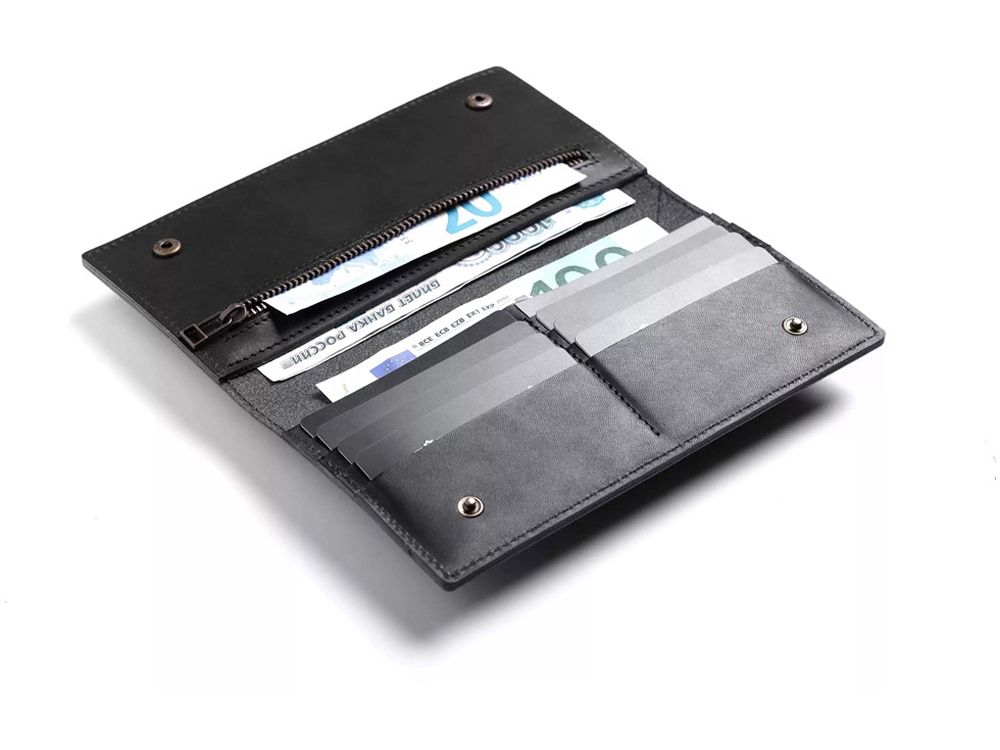 В меру строгий и универсальный, этот кошелек будет верным решением для людей, привыкших носить всё своё при себе. Из фурнитуры присутствует молния и надежные заклёпки. Плотная кожа готова к любым превратностям судьбы – от случайно пролитого кофе до ежедневного многолетнего ношения в разнообразных сумках и рюкзаках.
