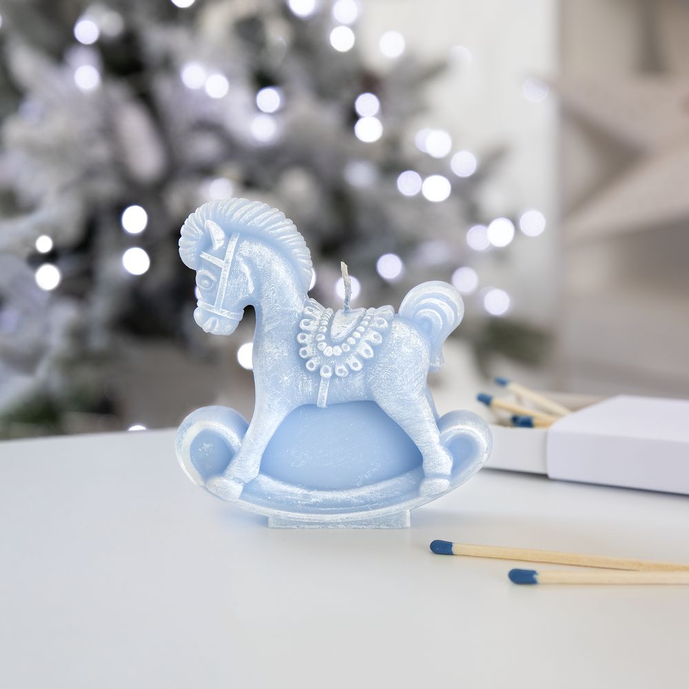 Свеча фигурная «Лошадка-качалка», голубая
