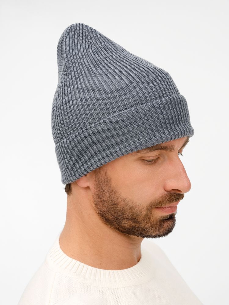 Удлиненный силуэт шапки Nobilis Mono из мягкой полушерстяной пряжи с широким отворотом создает стильный современный образ, а фактурная вязка добавляет объем и выразительность.