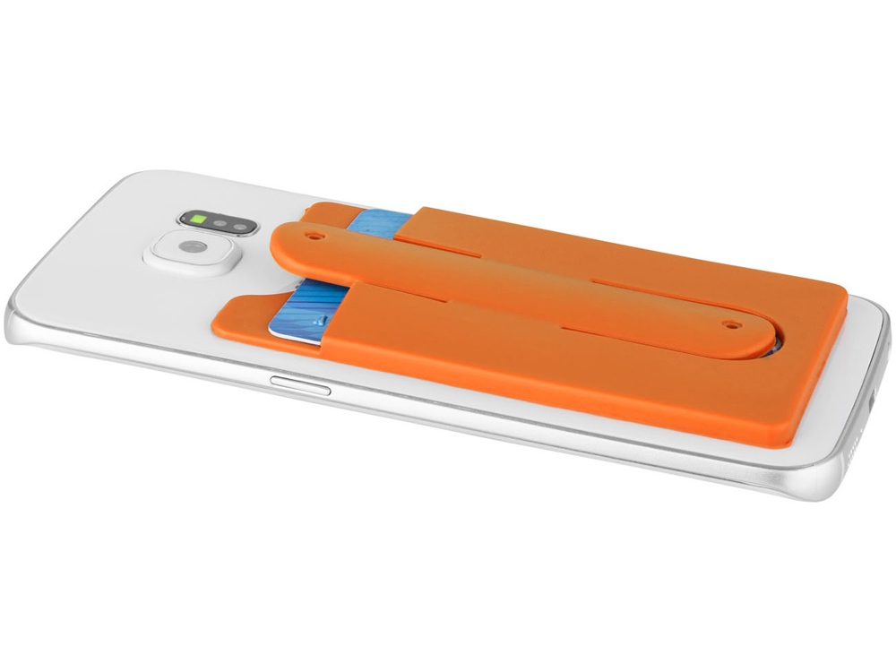 Чехол для карт с держателем мобильного. Этот мягкий защитный силиконовый чехол с помощью клейкой ленты можно легко прикрепить на задней стороне телефона. В нем можно разместить от 2 до 3 кредитных карт и / или удостоверения личности. Он также может быть использован в качестве подставки для телефона. Чехол достаточно тонкий и легко помещается в кармане. Силикон.
