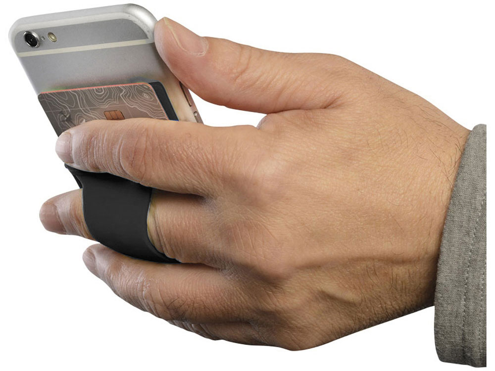 Силиконовый картхолдер для телефона с отверстием для пальца. Картхолдер можно легко прикрепить практически ко всем смартфонам с плоской панелью сзади при помощи липкой ленты. В него можно поместить кредитную карту/ идентификационную карту/ карту-ключ от номера / 5 визиток или банкноты. Отверстие для пальца для более удобного удержания телефона.