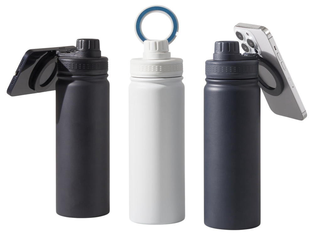 Современные технологии и стильный дизайн объединились в одной бутылке! Спортивная бутылка с магнитным держателем MagSafe поможет вам всегда держать водный баланс в норме и сделает жизнь удобнее. Благодаря магнитному держателю бутылка надежно удерживает iPhone 12 версии и новее. Магнитное крепление подходит также и для любого смартфона, т.к. в комплекте есть металлическое кольцо с клейким слоем. Кольцо наклеивается на заднюю крышку или чехол смартфона, и вы можете крепить смартфон к бутылке за секунду. Объем 600мл. Для кого эта бутылка? • Для спортсменов: Магнитное крепление позволяет следить за тренировками, слушать музыку или смотреть видео, не отвлекаясь на удерживание телефона в руках. • Для путешественников и автовладельцев • Для офисных и удаленных работников • Для всех, кто заботится об экологии Ключевые особенности: • Магнитная ручка - держатель MagSafe для iPhone и других смартфонов (если наклеить кольцо-стикер из комплекта) • Нетеряемая герметичная крышка • Сохраняет тепло до 11 часов, холод до 22 часов • Двойные стенки и вакуумная изоляция • Экологичные и безопасные материалы: пищевой пластик полипропилен и высококачественная нержавеющая сталь 304 марки