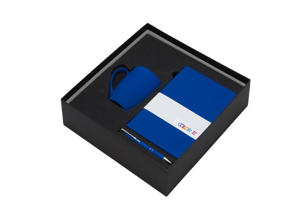 Подарочный набор с блокнотом С2, металлической ручкой и кружкой, синий