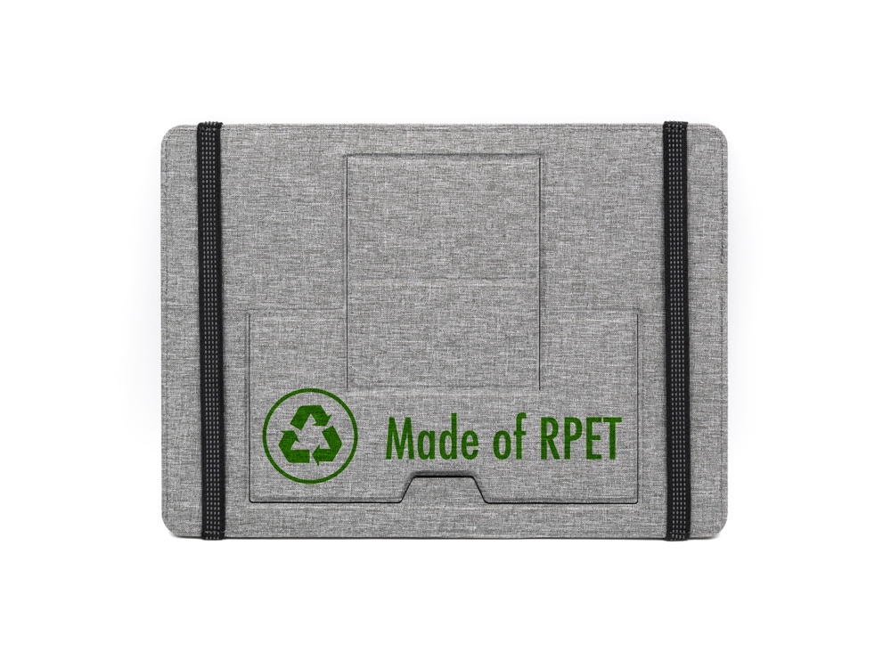 Clipboard Pro, который одновременно служит подставкой для ноутбука и настольным органайзером, является идеальным корпоративным подарком. В Clipboard Pro встроена складная подставка для ноутбука, что позволяет создать эргономичное рабочее пространство в любом месте! Помимо подставки для ноутбука, этот настольный органайзер оснащен подставкой для телефона с быстрой беспроводной зарядкой мощностью 15 Вт (регулируемой), планшетом для обмена, двумя магнитными док-станциями, держателем для ручек, держателем для карт, зажимом для кабеля и подставкой для телефона. Поддерживать порядок на рабочем столе еще никогда не было так просто! Этот универсальный ремень крепится к ноутбуку, как эластичная закладка.