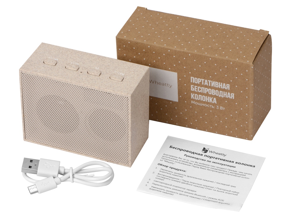 Портативное зарядное устройство Wheatty на 35% состоит из переработанной пшеничной соломы, что является положительным примером сокращения производства и потребления пластика в мире. Повербанк имеет миниатюрный размер и небольшой вес. Может заряжать два устройства одновременно. Поставляется в крафт упаковке из переработанной бумаги.