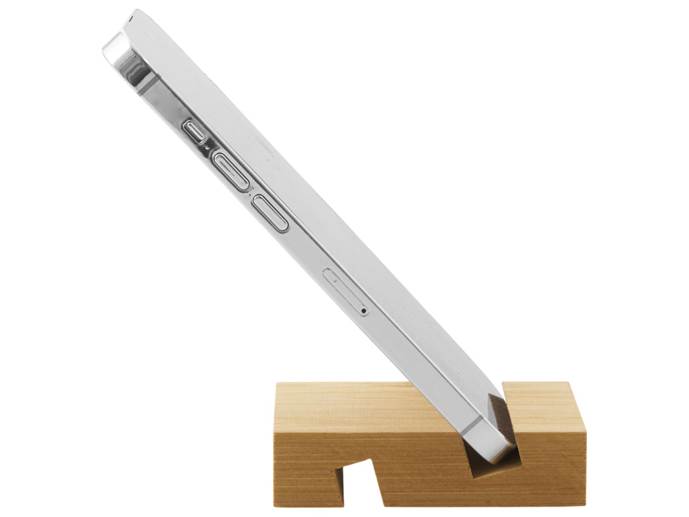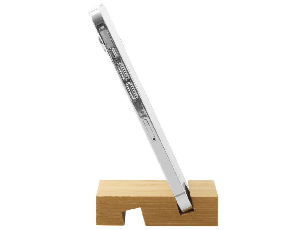 Экологичная подставка из натурального бамбука для мобильных устройств, планшетов или смартфонов. Имеет 2 разъема разной толщины, это позволяет как использовать ее с большим количеством гаджетов, так и менять наклон устройства при использовании. - Натуральный бамбук - Компактная и легкая - Персонализация методом УФ, гравировки, тампопечати - Два угла наклона