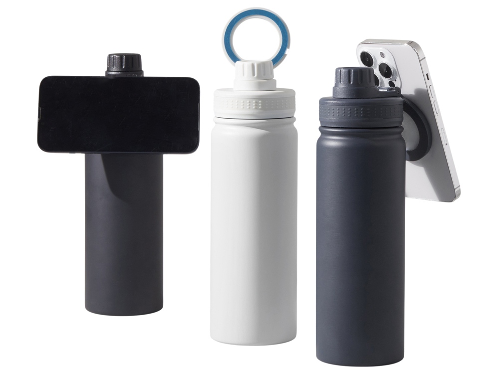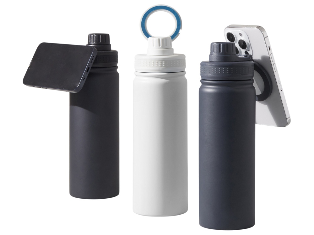 Современные технологии и стильный дизайн объединились в одной бутылке! Спортивная бутылка с магнитным держателем MagSafe поможет вам всегда держать водный баланс в норме и сделает жизнь удобнее. Благодаря магнитному держателю бутылка надежно удерживает iPhone 12 версии и новее. Магнитное крепление подходит также и для любого смартфона, т.к. в комплекте есть металлическое кольцо с клейким слоем. Кольцо наклеивается на заднюю крышку или чехол смартфона, и вы можете крепить смартфон к бутылке за секунду. Объем 600мл. Для кого эта бутылка? • Для спортсменов: Магнитное крепление позволяет следить за тренировками, слушать музыку или смотреть видео, не отвлекаясь на удерживание телефона в руках. • Для путешественников и автовладельцев • Для офисных и удаленных работников • Для всех, кто заботится об экологии Ключевые особенности: • Магнитная ручка - держатель MagSafe для iPhone и других смартфонов (если наклеить кольцо-стикер из комплекта) • Нетеряемая герметичная крышка • Сохраняет тепло до 11 часов, холод до 22 часов • Двойные стенки и вакуумная изоляция • Экологичные и безопасные материалы: пищевой пластик полипропилен и высококачественная нержавеющая сталь 304 марки