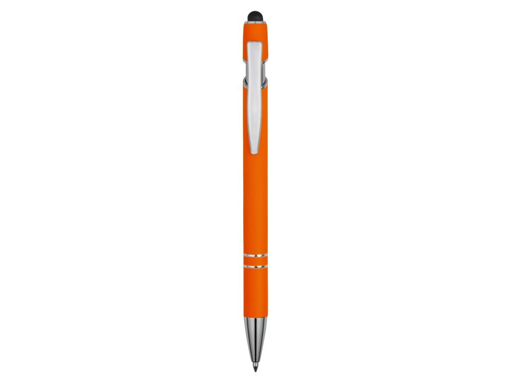 Ручка металлическая soft-touch шариковая со стилусом Sway, оранжевый/серебристый