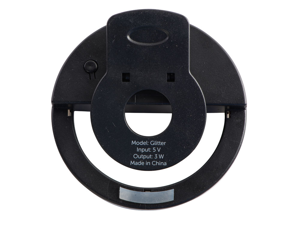 Световое кольцо Glitter делает ваши селфи- фото и видео более качественными за счет дополнительного освещения. Подсветка представлена нейтральным белым цветом от 48 светодиодов с 3 режимами яркости. Время непрерывного свечения - до 2 часов. Можно быстро зарядить от любого пауэрбэнка по micro USB. Благодаря удобной конструкции селфи-кольцо устанавливается и снимается за секунду. На корпусе имеются силиконовые защитные полоски, чтобы исключить даже малейшие повреждения экрану смартфона. • ровный нейтральный свет • 48 светодиодов, 3 режима яркости • до 120 минут непрерывной работы • готово к работе за секунду • не царапает экран смартфона