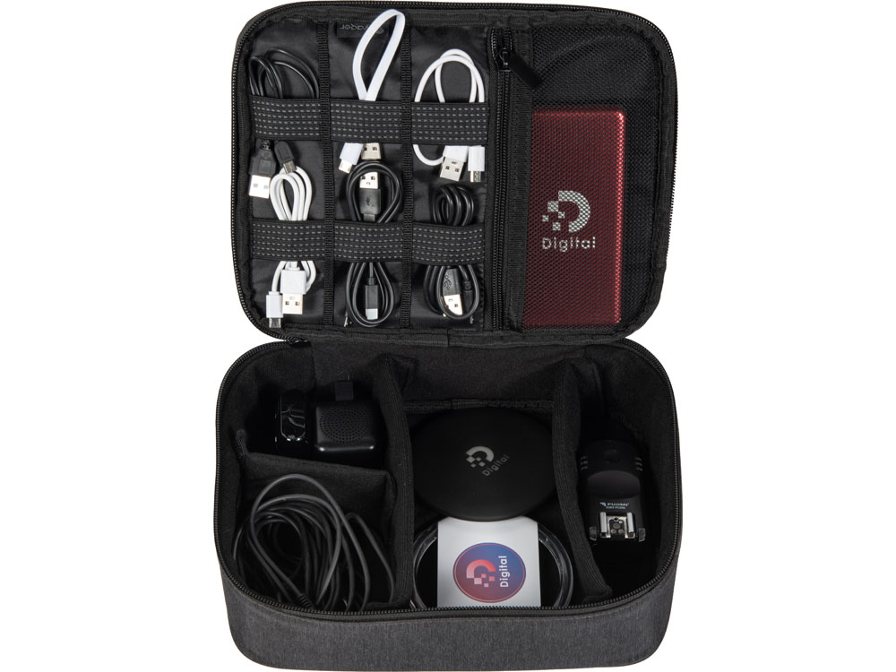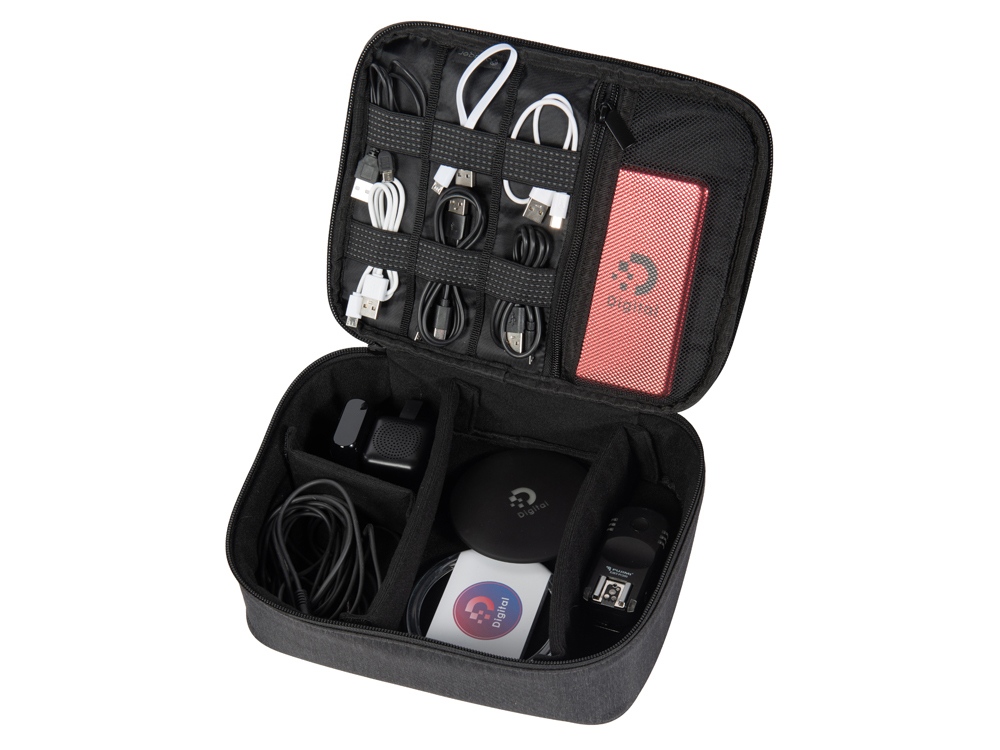 Органайзер для объемной электроники District от Voyager отличается своей вместительностью и возможностью регулировать размер секций. Он позволит не просто взять с собой в поездку всю необходимую электронику, но и сложить её аккуратно. В основном отделении органайзера четыре секции, разделенных высокими твёрдыми перегородками. Сюда можно положить, например, компьютерную мышь, зарядные блоки, достаточно крупный power bank и даже среднего размера фотообъектив. Шесть отделений на резинках в верхней части органайзера не дадут проводам запутаться, а сетчатый карман не заставит вспоминать, что вы туда положили. С внешней стороны органайзера есть дополнительный карман на молнии и удобная ручка для переноски. - Функциональность и вместительность - Высокие твёрдые перегородки - Удобная ручка Все аксессуары для деловых и туристических поездок серии District от Voyager выдержаны в одном стиле, выполнены из практичного материала и отличаются высокой эргономичностью.