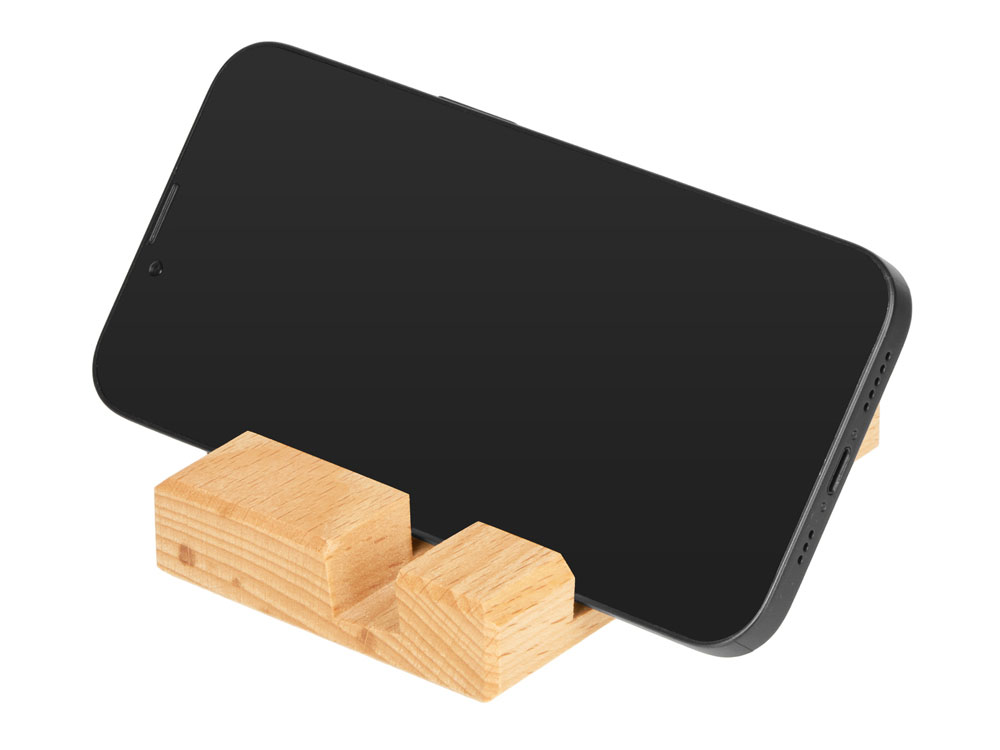 Подставка для смартфона сделана из высококачественного бука, что гарантирует прочность и экологическую безопасность изделия. В ней находятся две различные выемки, способные держать устройства различных размеров как с чехлом, так и без него. Материал безопасен для использования на любых поверхностях. Легко моется теплой водой.