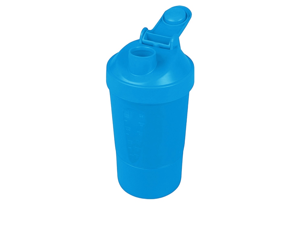 Шейкер для спортивного питания - это один из необходимых аксессуаров для спортсменов и людей, ведущих активный образ жизни. В нем можно приготовить протеиновый коктейль или фруктовый напиток. Шейкер классической формы, он удобно лежит в руке, к донышку прикручивается емкость для смешивания (таблетница), в которой можно хранить спортивные добавки: протеиновый порошок, витамины и другие концентраты. Внутри колбы имеется пластиковая сетка, чтобы процеживать спортивный напиток, а также металлический размешиватель, который растворяет порошок в напитке без комочков. Объем - 400мл. Шейкер изготовлен из пищевого пластика, он герметичен и легко моется. Шейкер имеет приятное на ощупь матовое покрытие, но подверженное незначительным дефектам (царапинам). Шейкер с нанесением - это классный и полезный спортивный подарок для коллеги, руководителя и сотрудников компании.