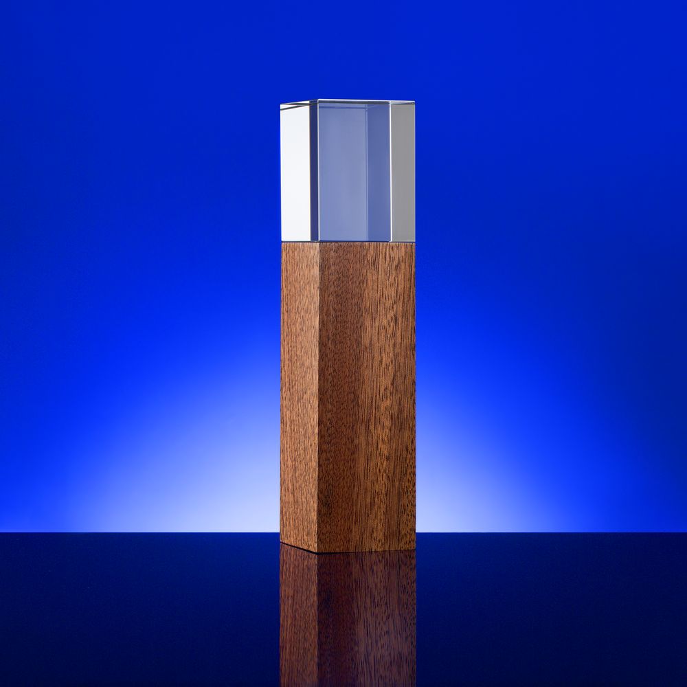 Навершие изготовлено из стекла К9, в основе которого лежит оптическое боросиликатное стекло. Эту марку стекла отличает низкий процент посторонних включений, высокий показатель преломления и высокая прозрачность — идеальные качества для изготовления наград премиального уровня.