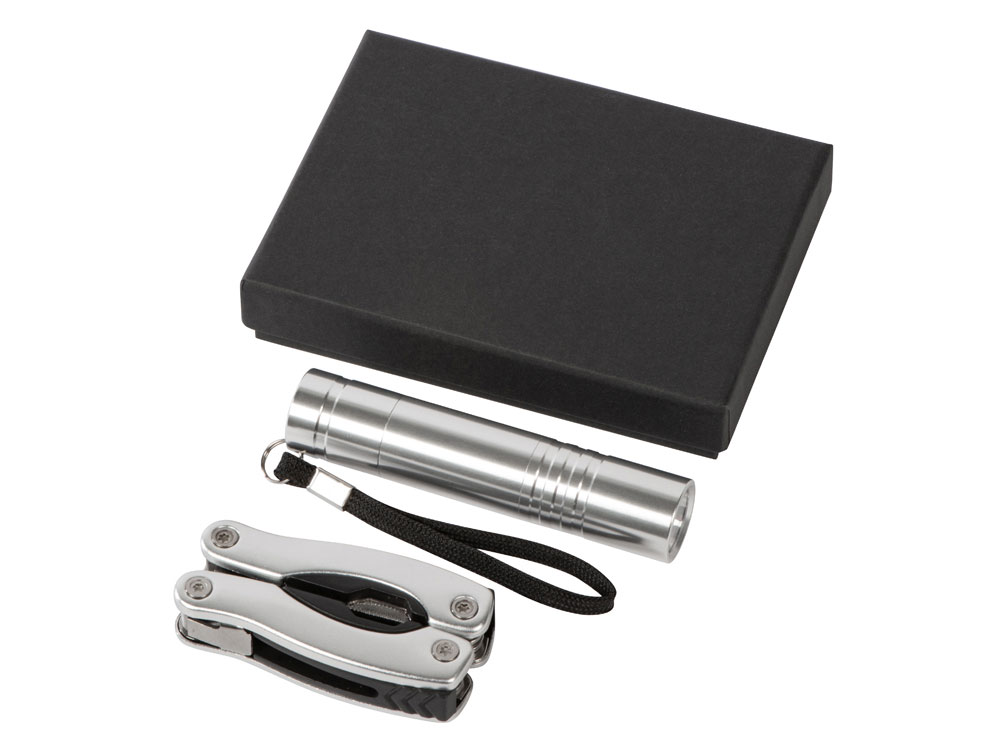 Подарочный набор Scout с многофункциональным ножом и фонариком, серебристый