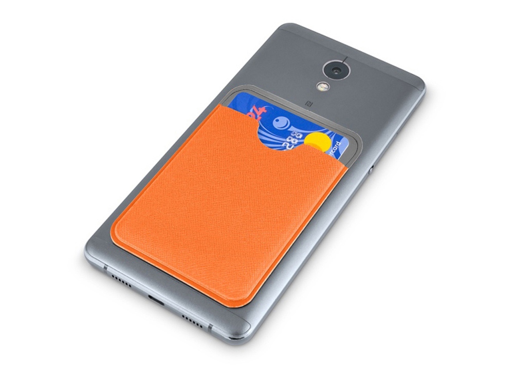 Чехол-картхолдер Favor на клеевой основе на телефон для пластиковых карт и и карт доступа, оранжевый