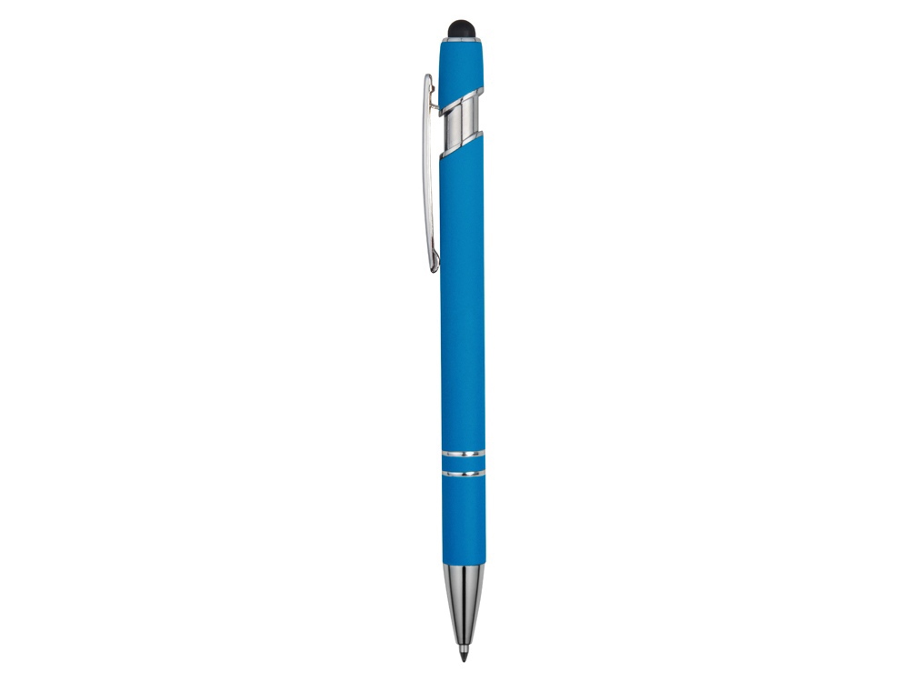 Ручка металлическая soft-touch шариковая со стилусом Sway, голубой/серебристый